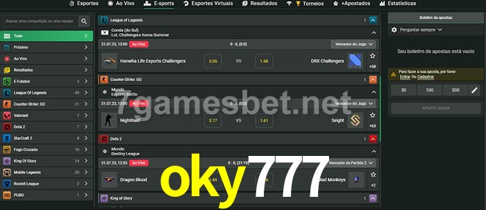 A aposta oky777 oferece aos jogadores a experiência mais conveniente de apostas em eSports!